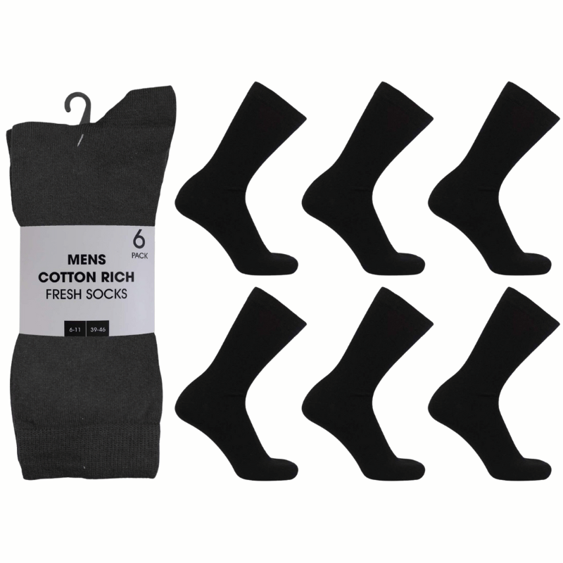 Mens 6 Pack Cotton Rich Fresh Socks - Black - Carton Price