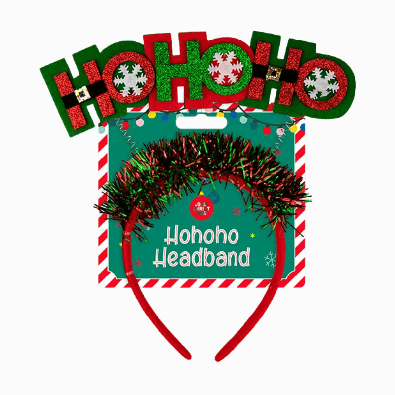 Novelty Ho Ho Ho Christmas Head Boppers. Each festive head bopper features a felt glitter HOHOHO placed on top of metal springs.