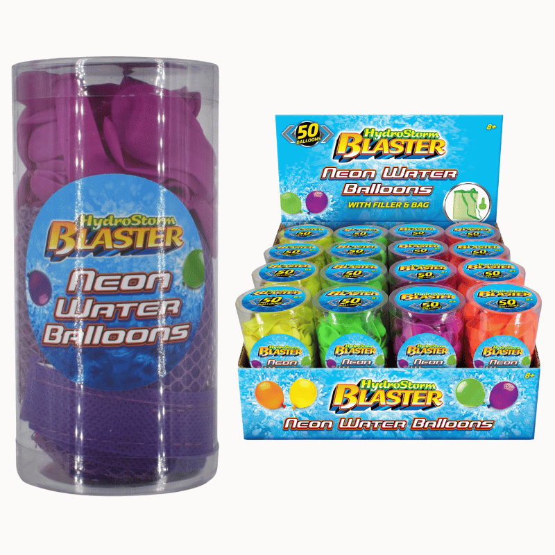 Turn up the fun with the 50 Piece Neon Water Balloon set, complete with filler and handy storage bag. Each pack features vibrant, assorted-color balloons perfect for outdoor parties, summer events, or retail impulse displays.