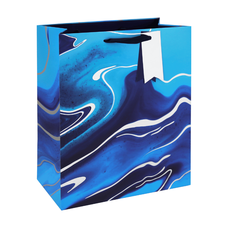 Make gifting stylish with the Blue Marble Design Medium Gift Bag, featuring a sleek, contemporary pattern and a compact yet spacious form. Perfect for mid-sized presents, it combines durability with visual appeal for birthdays, anniversaries, and special events.