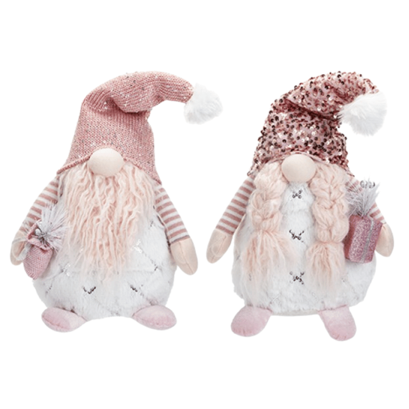 Brighten holiday displays with this charming pink standing gonk, topped with a sparkling glitter hat. Standing 20 inches tall, it adds whimsical character to festive décor, ideal for shelves, mantels, or retail arrangements.