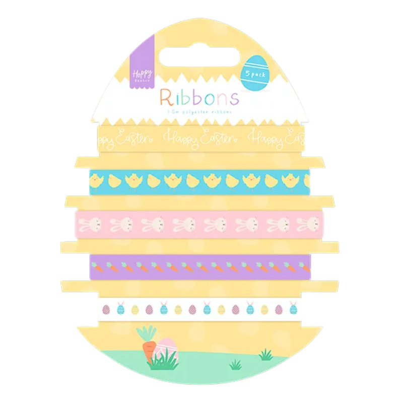 - Each length of ribbon features an Easter themed pattern that includes bunnies, 'Hoppy Easter' and more.