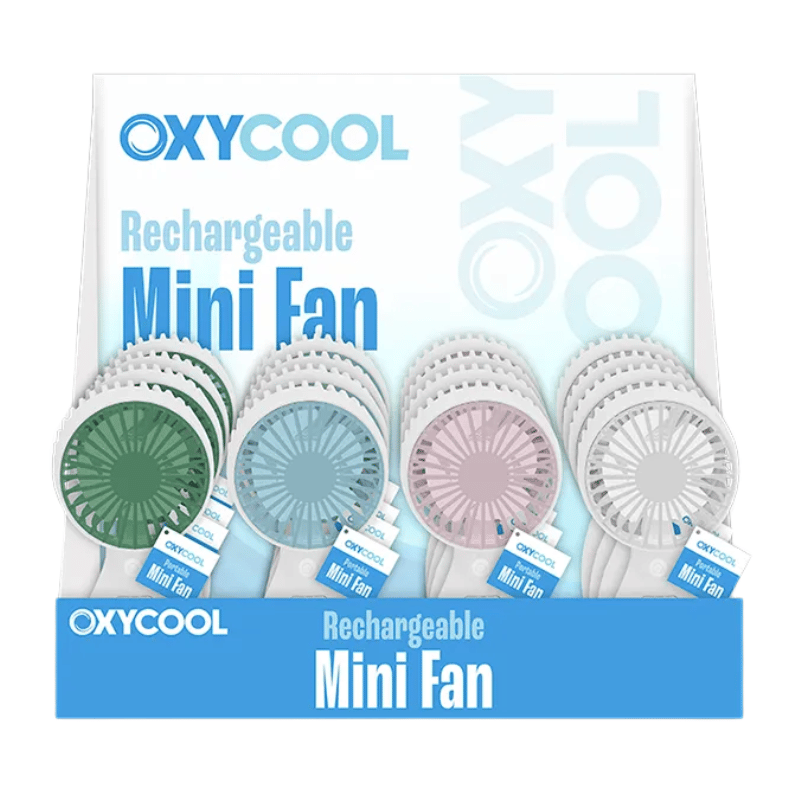 Each handheld fan measures L13 x W6 x D4.5cm - perfectly pocket sized, and features soft blades with a coloured front. Simply press on/off button on the front to use. Rechargeable 400mAh via USB-C cable (included). This fans come in four assorted colours.