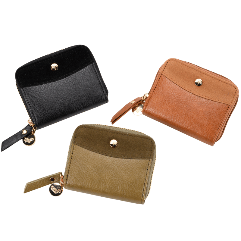 Elevate everyday essentials with the Faux Leather & Suede Mini Zip Purse, combining textured style with compact practicality. Featuring inner card holders and a secure zip closure, it keeps coins and cards neatly organised in one sleek design.