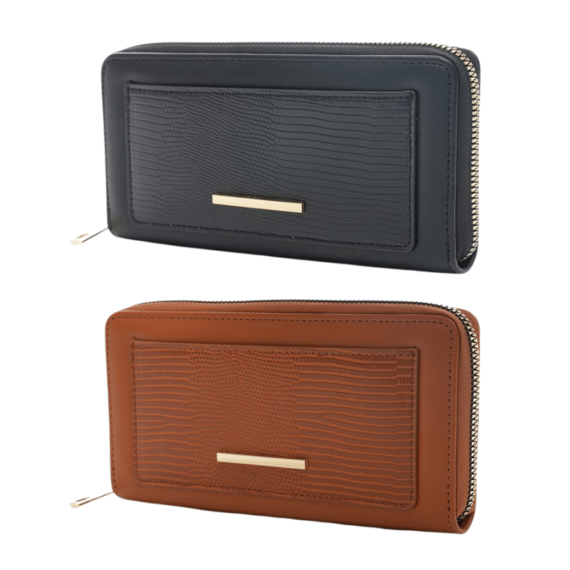 Ladies large textured purse features a sleek finish with metal detailing, offering stylish storage for cash, cards, and essentials.