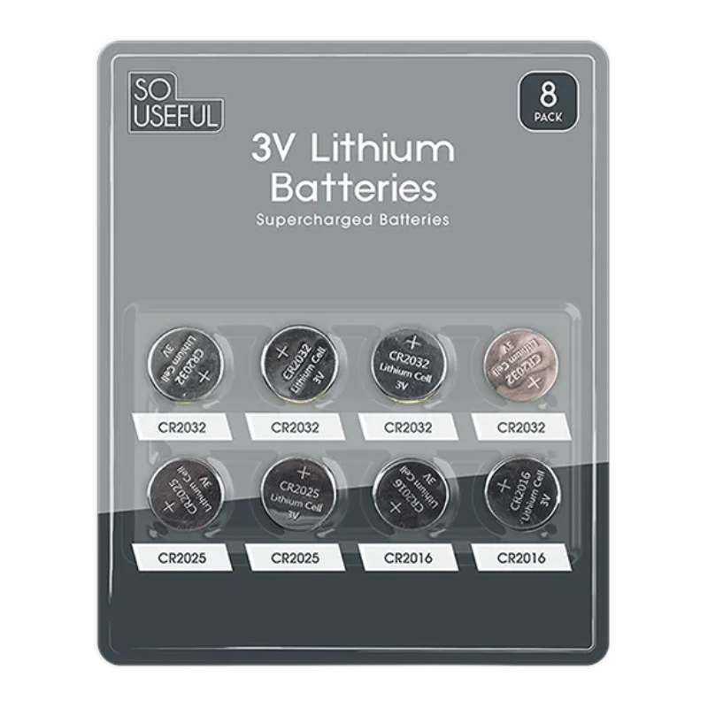 Power small devices reliably with this 3V Lithium Batteries 8 Pack, designed for consistent, long-lasting performance. Ideal for watches, key fobs, toys, and other compact electronics requiring dependable energy output.