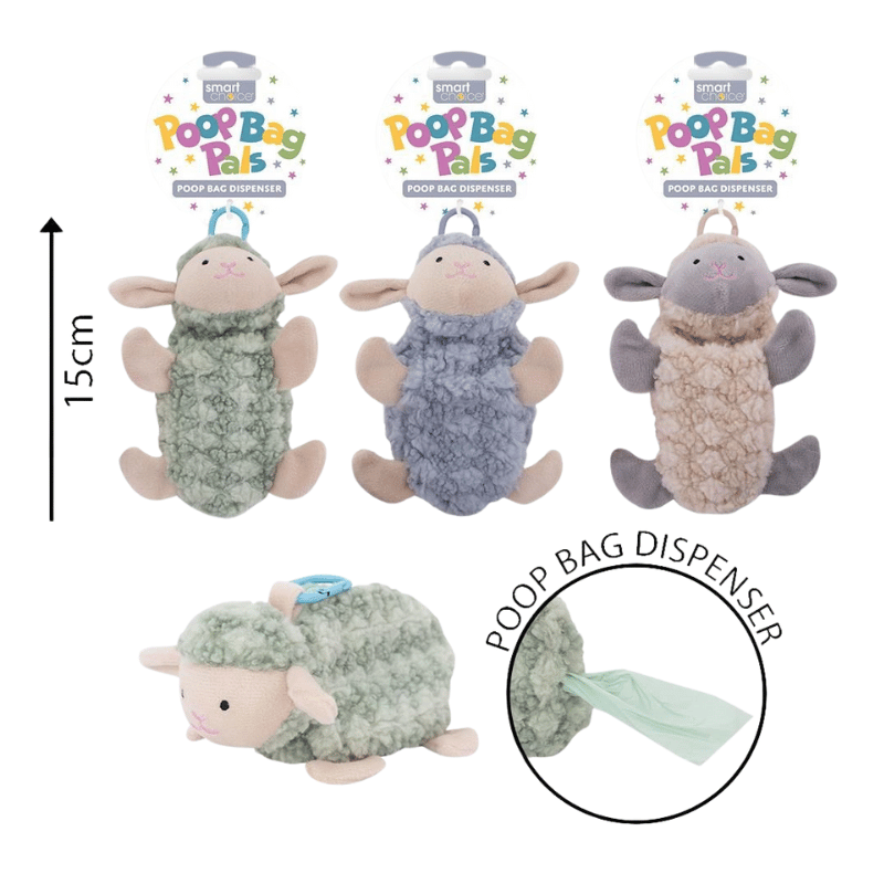 Make walk time fun with this plush sheep poo bag dispenser, measuring 15cm and made from soft polyester. Designed with convenience and humor in mind, it clips easily to leads or bags for on-the-go cleanups.