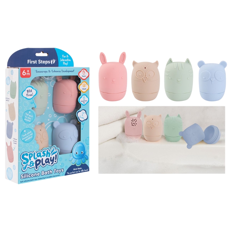 Each pack includes four assorted toys crafted from soft, durable silicone for safe, gentle splashing. Explore more in Wholesale Baby Feeding & Weaning for more lines