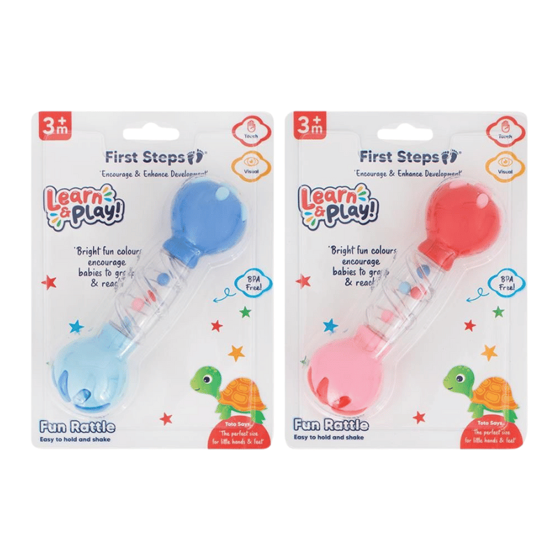 Dumbell Rattle Assorted. Made from ABS and EVA material, designed with little hands in mind, making it easy to hold and shake