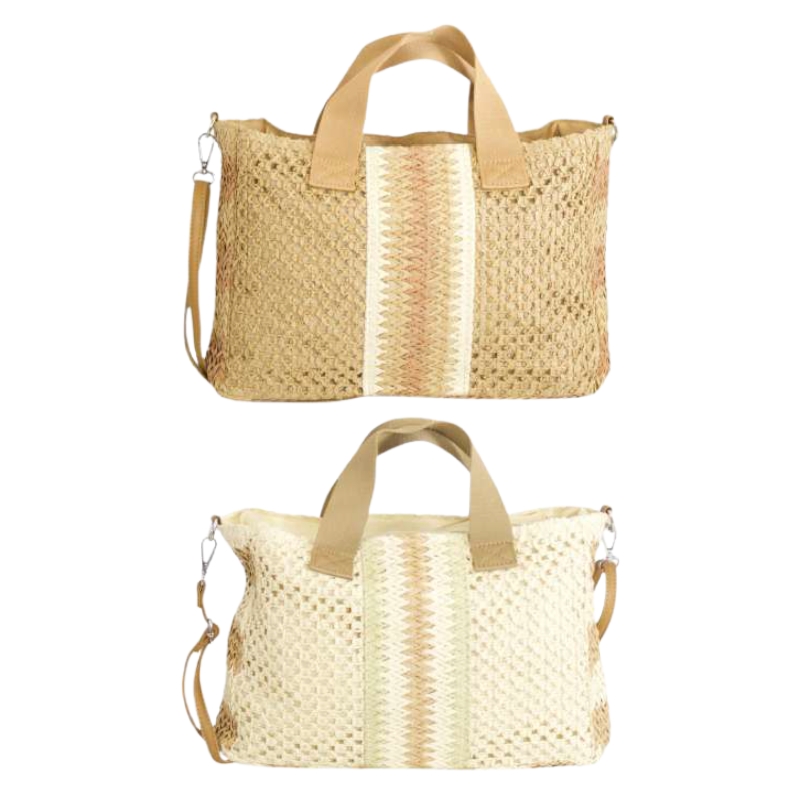 Boho Woven Straw Handbag With Dual Handles And Removeable Crossbody Strap