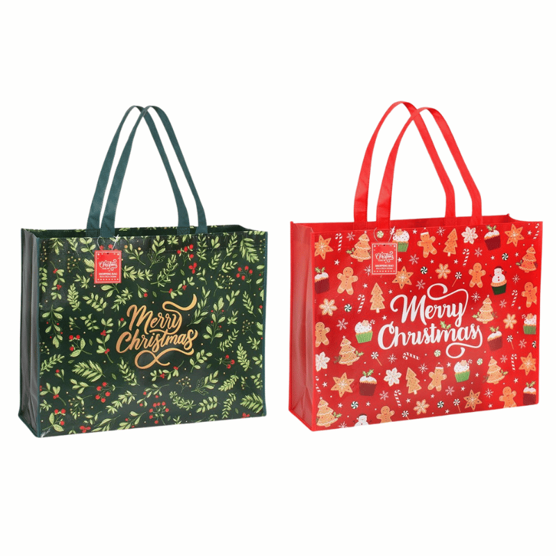 Add festive flair to shopping trips with the Christmas 2 Assorted Shopping Bags in Traditional Designs. Made from coated non-woven material, these bags are strong, reusable, and eco-friendly. Measuring approximately 43.5cm x 33.5cm x 14.5cm, they offer ample space for groceries, gifts, or everyday use.