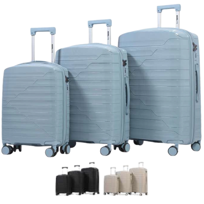 Featuring double wheels and combi locks, the three-piece set includes 20, 24, and 28 inch cases in assorted colours. Explore more in Wholesale Travel Accessories for more lines