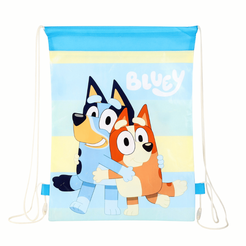 The official Bluey Pull String Bag is a lightweight and colorful solution for kids on the go. Featuring vibrant Bluey graphics, it's perfect for carrying sports gear, school items, or daily essentials with ease.