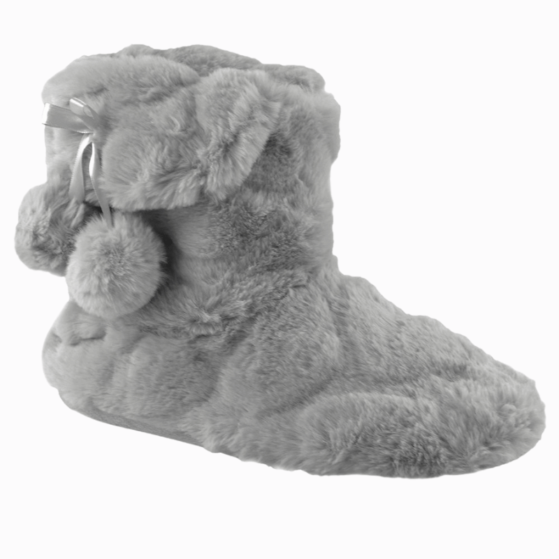 Kids Plush Bootee Slipper - Grey