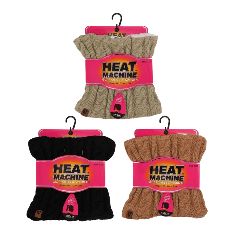 Stay warm in style with the Ladies Heat Machine Cable Knit Snood, featuring a classic knit outer and luxuriously soft brushed inner lining. Designed for maximum comfort and insulation, it's ideal for cold-weather retail.