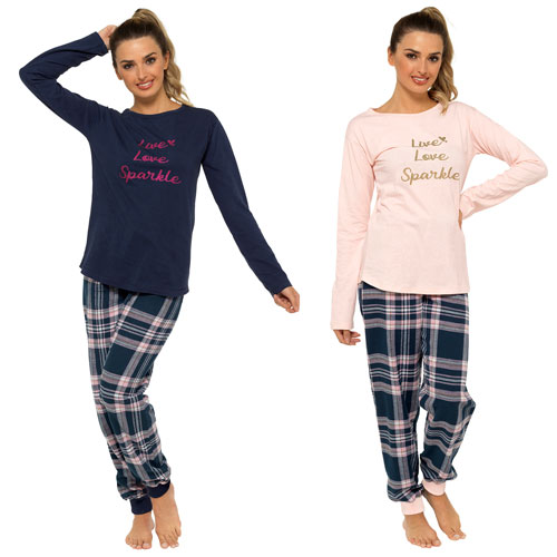Ladies Check And Print Pyjama Set. With check pants and contrasting print on top.