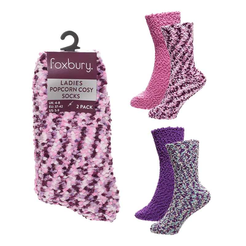 Step into comfort with our Ladies Popcorn 2 Pack Slipper Socks. These cozy slipper socks are designed for warmth and style, featuring a popcorn texture and a delightful 2-pair pack.