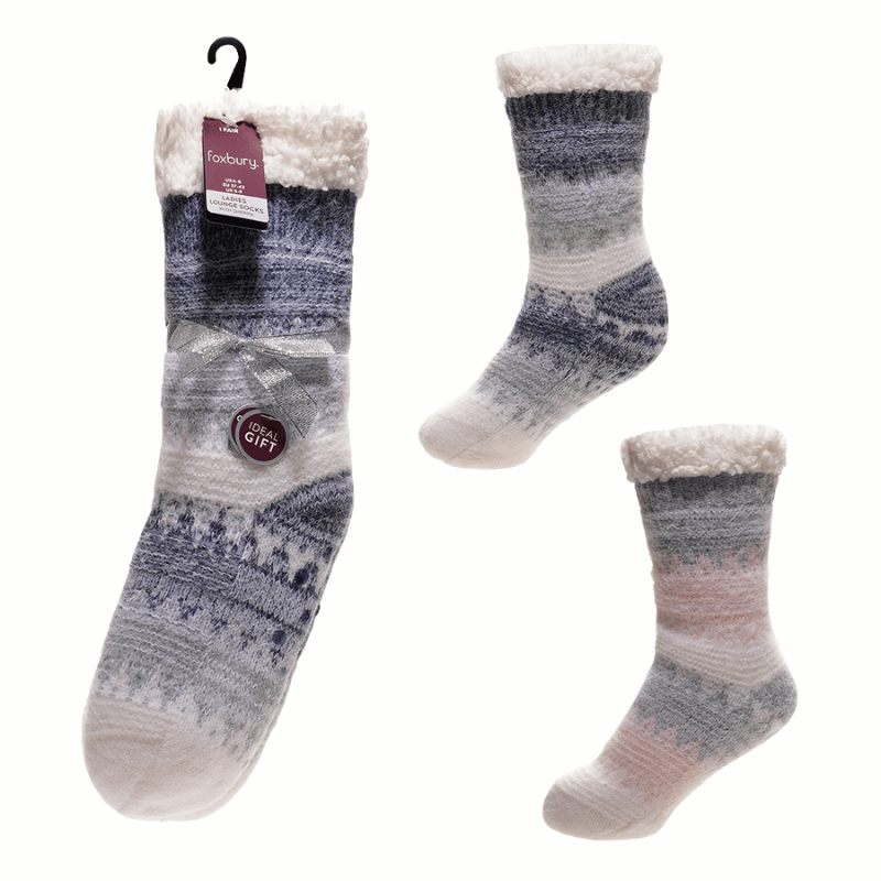Enjoy cosy comfort with the Ladies Soft Lounge Socks with Gripper. Made with an acrylic outer and polyester lining, these socks provide warmth and a soft touch. The built-in grippers ensure safety on smooth surfaces, making them a practical and stylish choice for lounging at home.