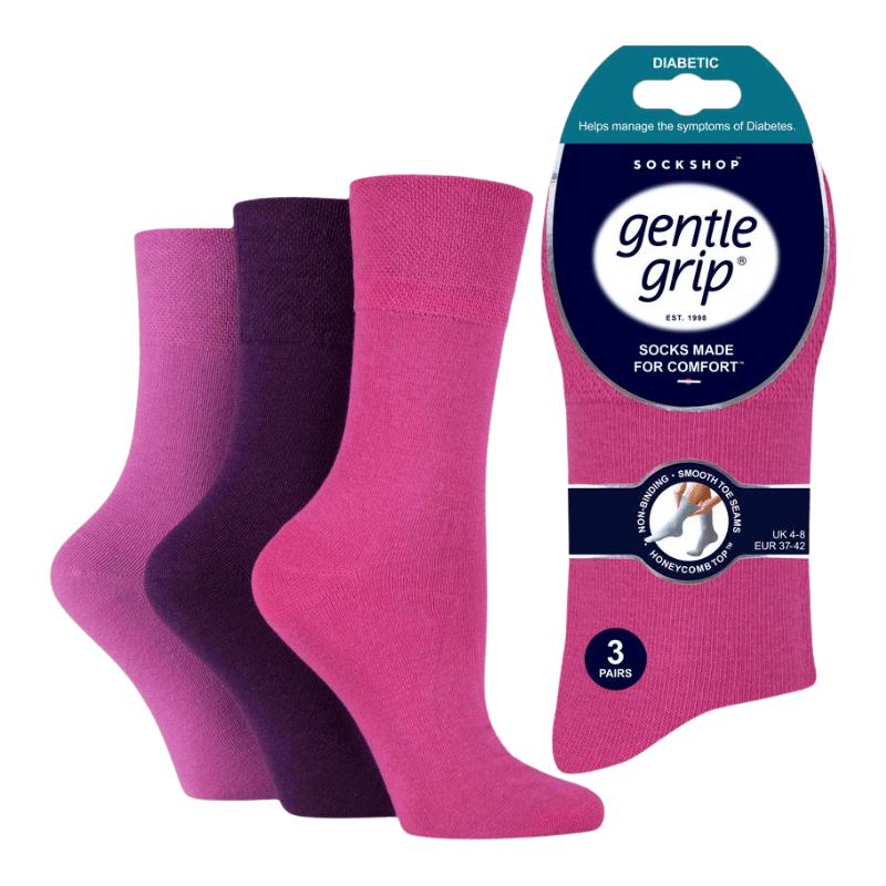 Ladies Diabetic Gentle Grip Socks Pastel
