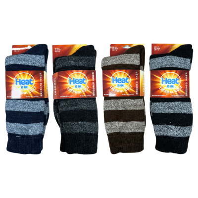 Mens 'Heat Is On' Striped Thermal Cosy Socks