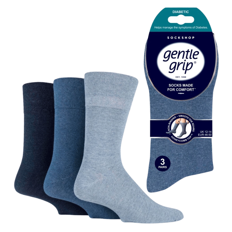 Mens Big Foot Diabetic Gentle Grip Socks Blue Assorted