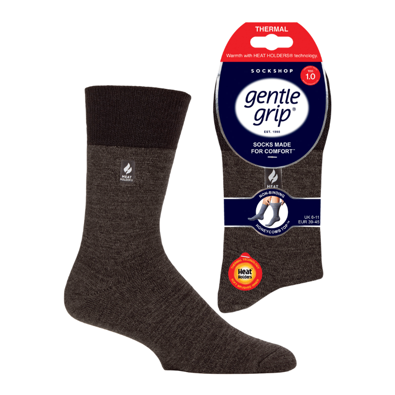 Stay warm in colder conditions with Mens Heat Holders Gentle Grip Thermal Socks in Dark Mix, sized 6–11. The non-binding top gently moulds to your legs, helping prevent restriction and unwanted compression marks.
