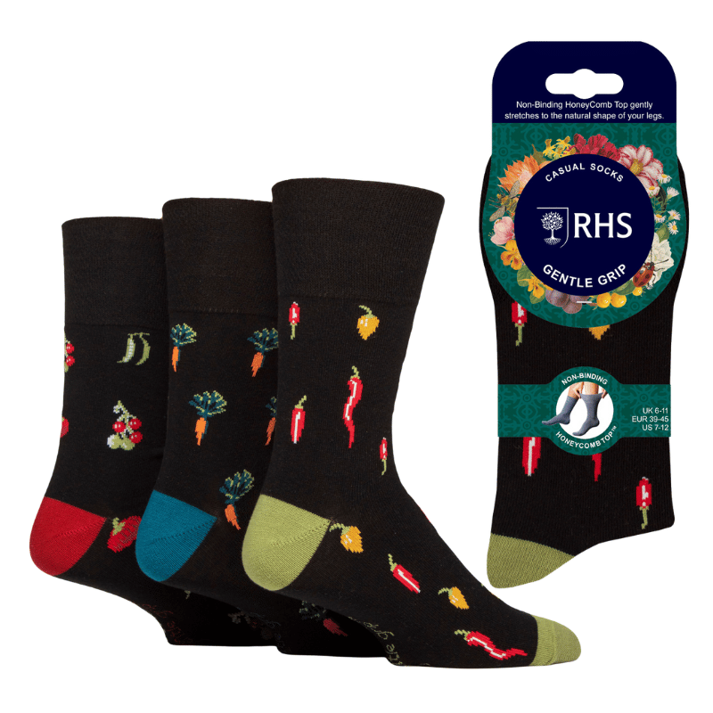 Mens RHS Gentle Grip Socks Jacquard Vegetables