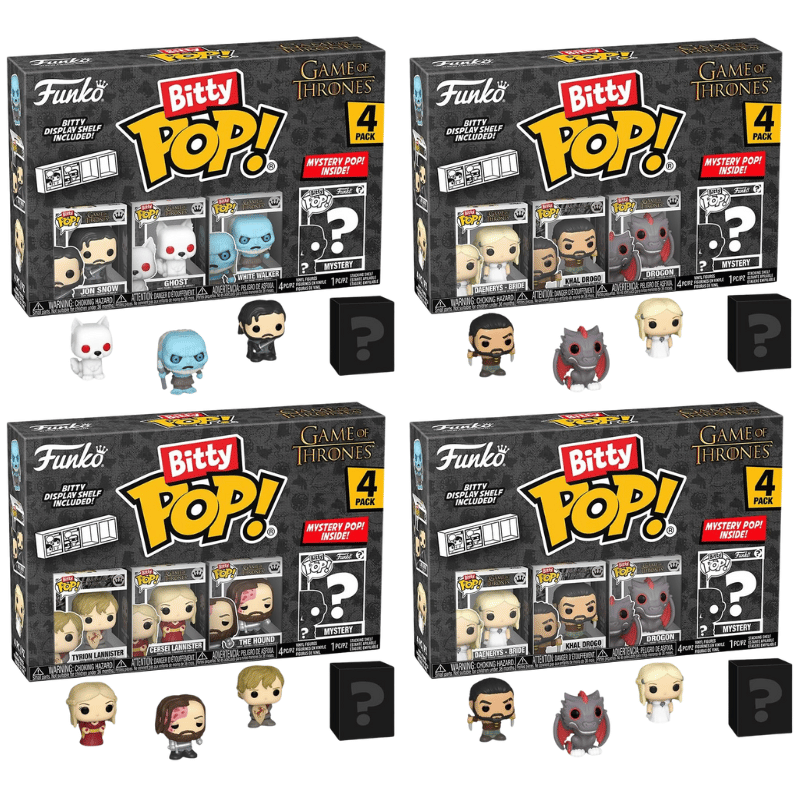 Discover tiny legends with Funko Bitty POP! Game of Thrones mystery figures, featuring 2.2 cm versions of iconic characters. Each 4-pack includes assorted miniatures with collectible charm and signature Funko detail. Officially licensed, they’re ideal for fans and display collectors alike.