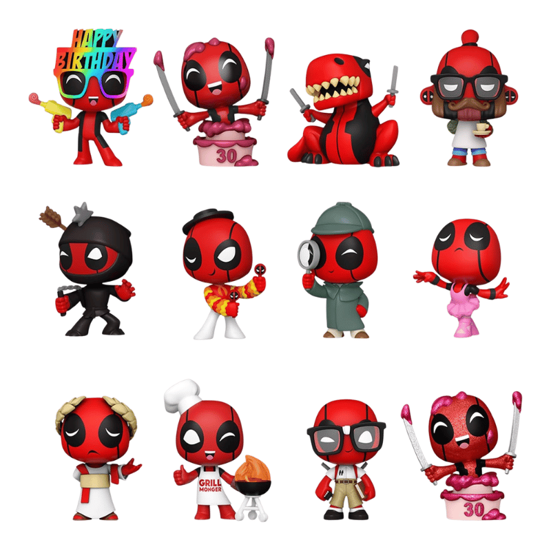 Official Funko Mystery Mini celebrating Marvel Deadpool’s 30th anniversary, featuring collectible mini figures with fun character styling. Each box contains a surprise design from a set of twelve to collect