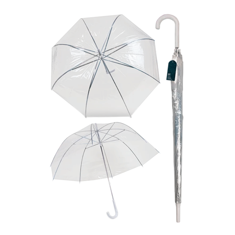 Shield from the rain with this 60cm Clear Dome Umbrella, offering full coverage and visibility. Its transparent canopy and sturdy metal frame provide both style and reliability, making it ideal for everyday use. A curved handle ensures a comfortable grip and elegant finish.